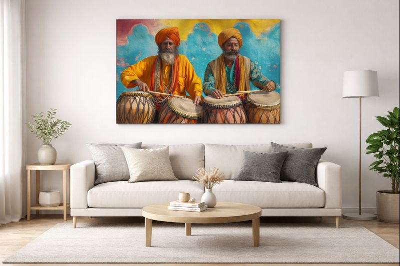 This beautiful painting is a work of art. Bring culture and rhythm into your space with this vibrant canvas painting featuring traditional Indian musicians in rich, expressive colors. Printed on high-quality canvas and finished with a sturdy wooden frame, this artwork adds warmth, character, and a timeless artistic touch to modern and classic interiors alike. Perfect for living rooms, offices, or statement walls.